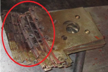 图3.过热熔断与烧蚀变形的阻尼系统及磁极铁芯