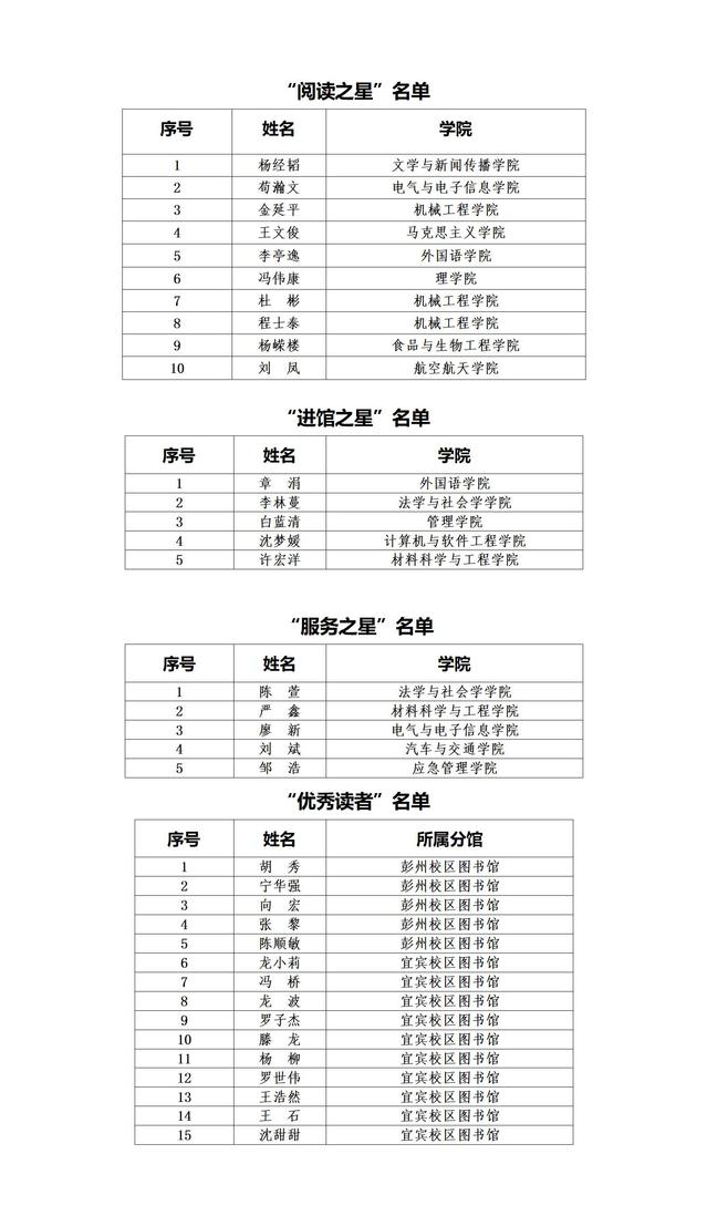 图书馆馆长彭国莉介绍了活动背景并宣读了《关于表彰2022年度优秀读者的决定》。彭国莉介绍,学校为推进书香校园建设,发挥人才培养作用,围绕“4.23世界读书日”开展活动,至今已有14年,其初心和目的就是希望通过开展活动使阅读成为习惯,书香溢满校园。为此,今年的阅读文化节,结合实际,学校扩大了表彰范围,将往年的“十佳读者”表彰扩充成为“阅读之星”“进馆之星”和“服务之星”,并在“一校三馆”的服务背景下,评选了宜宾校区和彭州校区优秀读者。希望通过对这些优秀读者的表彰,能进一步促进同学们的阅读积极性,营造良好的校园阅读氛围。