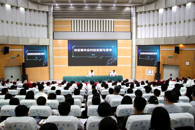 “习近平总书记强调,应急管理是国家治理体系和治理能力的重要组成部分,承担防范化解重大安全风险、及时应对处置各类灾害事故的重要职责,担负保护人民群众生命财产安全和维护社会稳定的重要使命……”为深入学习贯彻习近平总书记关于应急管理体系和能力建设以及视察中国人民大学时的重要讲话精神,4月29日,罗强副省长赴联系高校——西华大学,以《突发事件应对的实践与思考》为题,为师生们作了一堂专题党课。罗强强调,要坚持以习近平新时代中国特色社会主义思想为指导,坚定不移听党话、跟党走,围绕立德树人根本任务,强化四川省应急管理学院建设,更高质量做好突发事件应对和应急管理工作,不断提升高校服务地方经济社会发展能力与水平。校党委书记余孝其主持报告会。