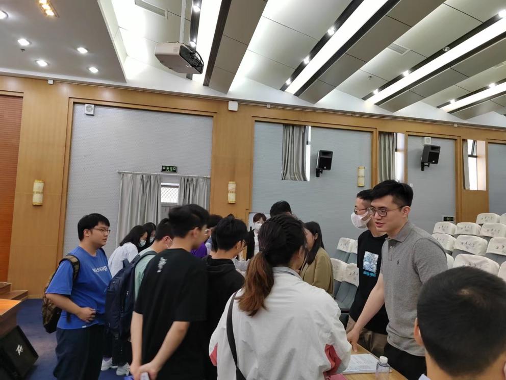 随后,由李秋实教授联系的北航成都创新研究院三支专家团队代表分别介绍了研究院的基本情况、三支团队所属公司的研究方向和为学院首届毕业生量身定制的招聘需求,分享了往届师兄师姐在研究院的优秀表现,并热情邀约同学们现场投递简历。讲课结束后,同学们纷纷上前递交了求职简历,并积极向团队专家们请教和探讨个人职业发展问题。