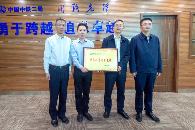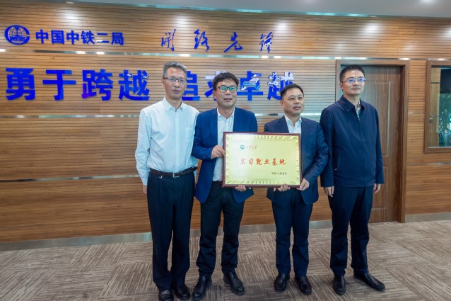 在与会人员的共同见证下,学校授予中铁二局“西华大学实习就业基地”牌匾,中铁二局授予学校“优质人才培养基地”牌匾。