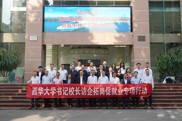 为贯彻落实党中央、国务院关于高校毕业生就业工作的决策部署,深入落实就业工作“一把手”工程,进一步深化校企合作,5月16日,校长刘树根、校党委副书记张力一行前往中铁二局调研交流,与中铁二局集团有限公司总经理张兵、副总经理胡志勇、相关职能部门负责人、集团下属子公司代表、校友代表及在校生代表座谈。双方就校企合作、人才培养合作、加强科技攻关、毕业生就业、实习实训、建立常态化合作机制等进行深入交流,旨在把“访企拓岗”落实到各个层面,促进毕业生更加充分更高质量就业。座谈会由胡志勇主持。