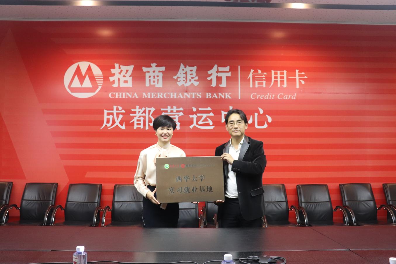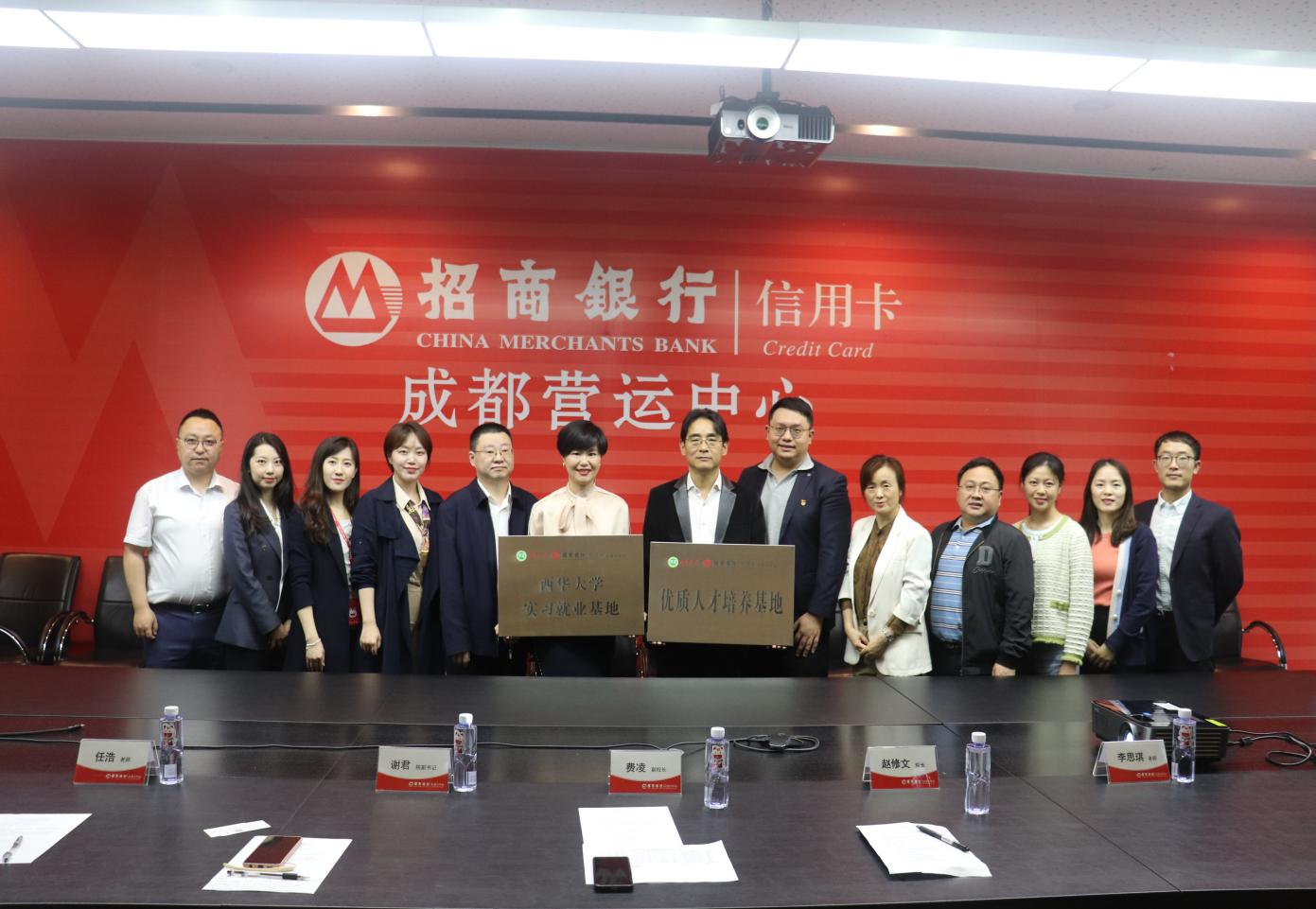 在与会人员的共同见证下,学校授予招商银行信用卡成都营运中心“西华大学实习就业基地”牌匾,招商银行信用卡成都营运中心授予学校“优质人才培养基地”牌匾。座谈会后,全体人员参观了企业的办公环境、实习生宿舍等。