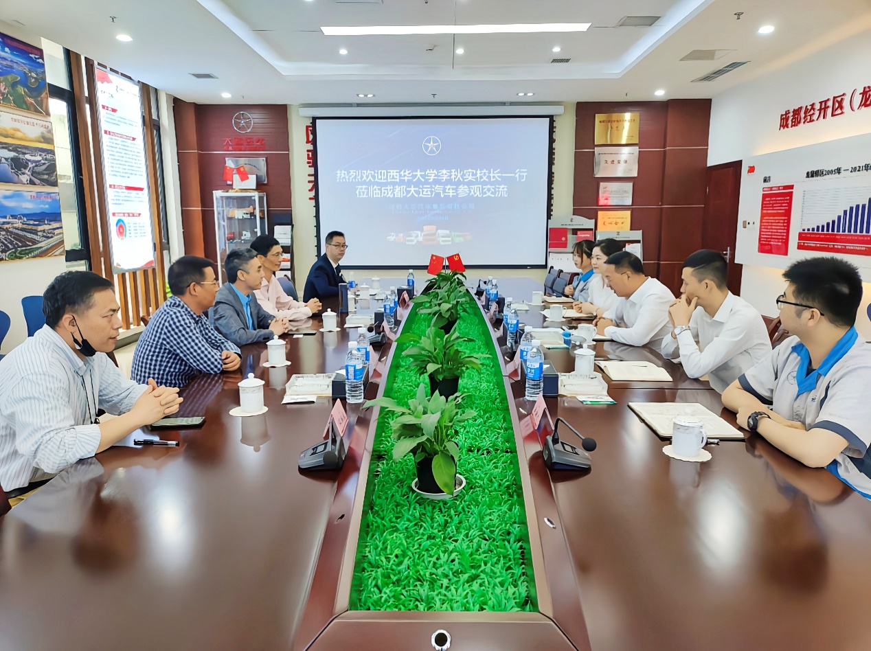 会前,在公司常务副总经理谢平的带领下,李秋实副校长一行参观了成都大运汽车集团有限公司的销售中心、党建展厅及经开区统战工作示范基地,乘坐体验了大运汽车集团纯电动MPV,充分了解公司的基本情况、发展历程、产品研发、所获荣誉、党建工作等方面的情况。