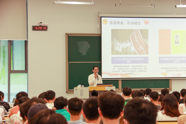 费凌指出,1919年五四运动爆发,民族危难之际,以毛泽东、周恩来、邓颖超、蔡和森、李达、王尽美、邓中夏等为代表的先进青年知识分子,为拯救民族危亡、捍卫民族尊严、凝聚民族力量,掀起了伟大的社会革命运动,带领越来越多中国先进分子集合在马克思主义旗帜下。新中国成立后,杨华作为当时的青年代表,组建北京青年志愿垦荒队,挥洒青春,奔赴辽阔荒凉的“北大荒”,开垦荒地1800亩,生产粮食14万公斤,建房1200平方米,涌现出29名劳动模范,35名播种能手、44名农具手,为投身祖国建设,贡献自己力量。2022年,习近平总书记在纪念共青团成立100周年大会上对广大青年发出号召“新时代中国青年要珍惜这个时代、担负时代使命,在担当中历练,在尽责中成长!”希望同学们以他们为榜样,珍惜青春,不负韶华。