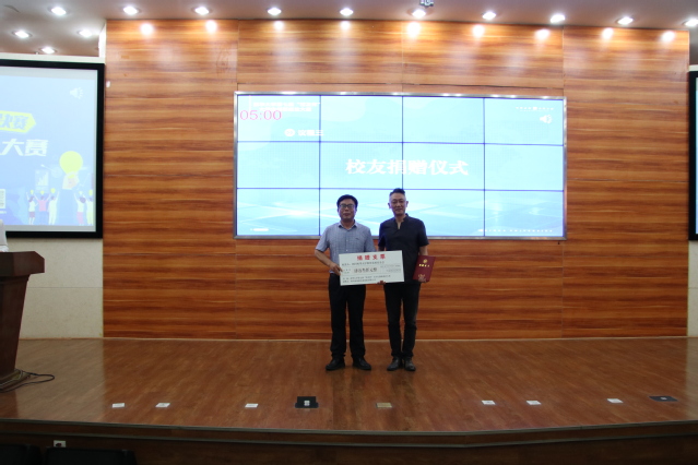 大赛现场,张力为校友颁发捐赠证书和捐赠牌。张力、王政书为新聘大学生创新创业导师颁发聘书。