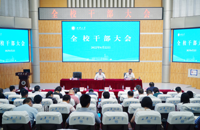 6月22日下午,为了推动改革、推进内部管理,解决好学校发展中的一系列问题,进一步聚焦高等教育的根本任务,学校在四教报告厅召开了全校干部大会,听取各单位报告,努力形成共识,齐心协力朝着目标攻坚克难。全体校领导、副处及以上中层领导干部参加了会议,会议由校长刘树根主持。
