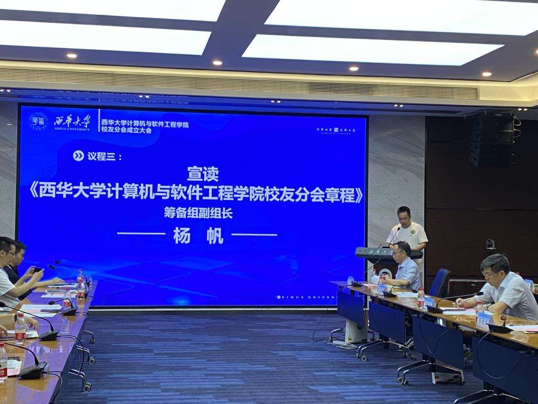 筹备组副组长杨帆宣读了《西华大学计算机与软件工程学院校友分会章程》。