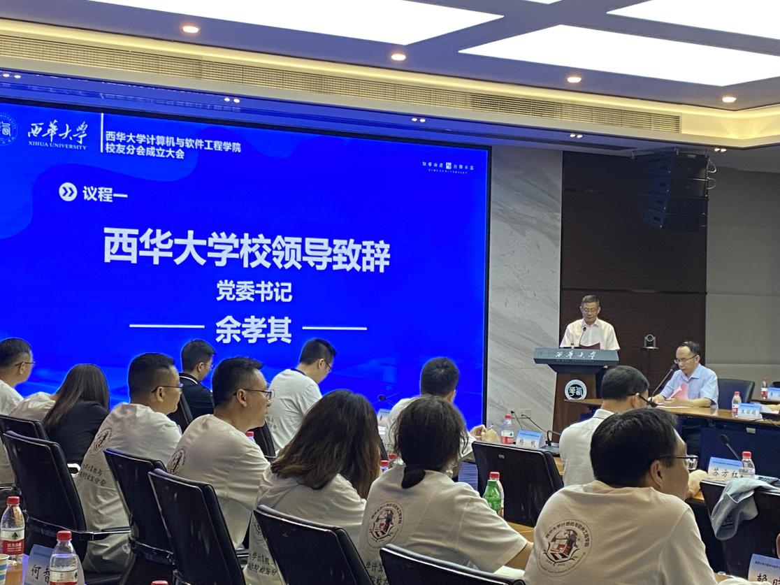 为进一步联络校友,增强校友与母校的联系和凝聚力,促进校友与母校之间全方位、多方面合作,6月25日,西华大学计算机与软件工程学院在办公楼101会议室举行校友分会成立大会。校党委书记余孝其,副校长刘小兵,校级干部、校友总会副常务副会长王政书,原副校长朱晋蜀和部分职能部门负责人,学院全体领导、部分教师,以及来自各行各业共计25位校友代表线下参加了成立大会,同时约有120位校友通过腾讯会议线上参与大会。校友分会成立大会由计算机与软件工程学院党委副书记李欣主持。