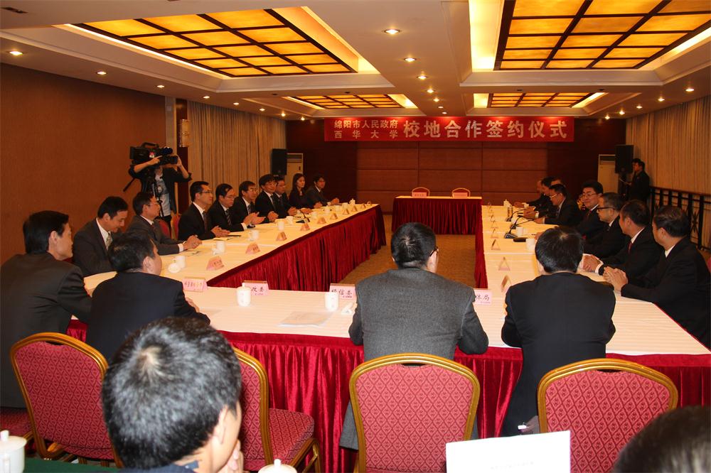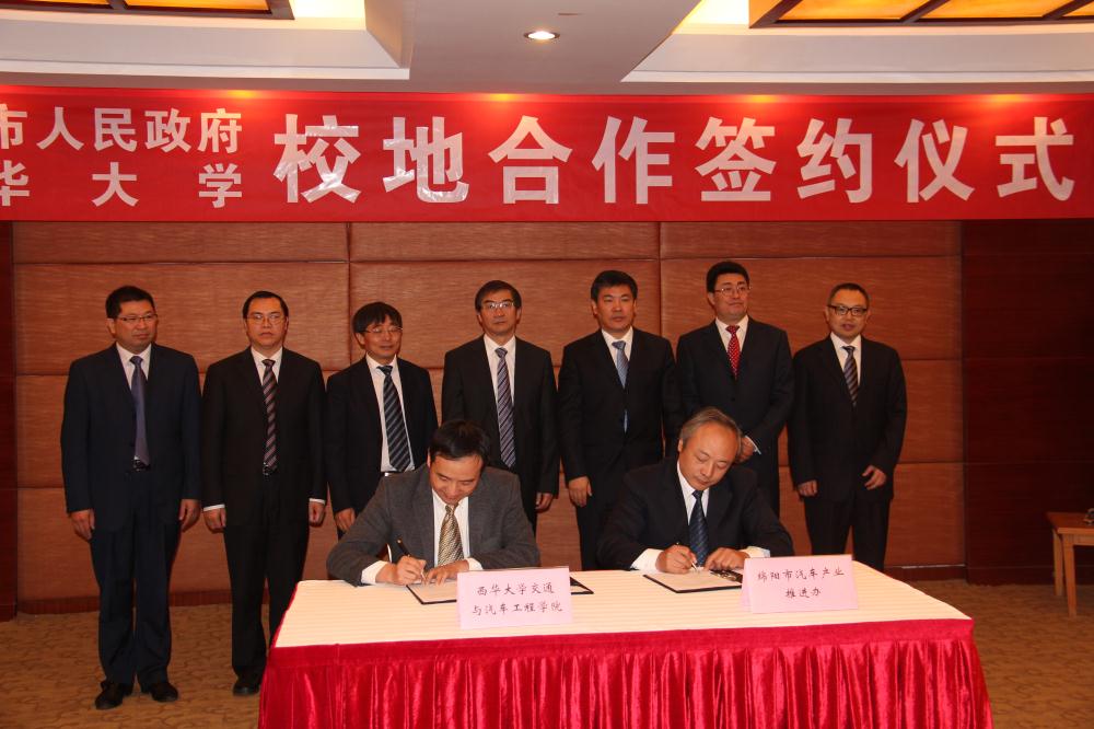 10月13日,西华大学与绵阳市校地战略合作签约仪式在绵阳举行。根据协议,双方将在绵阳科技城高端成长型产业,特别是新能源汽车产业发展方面开展紧密合作。 绵阳市委书记罗强,绵阳市委副书记、市长林书成,市委常委、科技城党工委副书记、管委会常务副主任颜超,副市长谢晓东,高新区管委会主任魏德谦,市委秘书长董晓彬,市政府秘书长夏明出席签约仪式,颜超主持签约仪式。绵阳市经信委、发改局、科技局等相关部门与长虹公司、新晨动力等企业相关负责人参加了签约仪式。 校党委书记张小南,校党委副书记、校长刘清友,副校长何建平、王政书与党委办公室、地方合作与服务处、科技处、军工科研生产管理处、交通与汽车工程学院主要负责人赴绵阳参加了签约仪式。 签约仪式上,绵阳市委书记罗强、市长林书成和校党委书记张小南分别作了致辞。罗强书记在讲话中对张小南、刘清友一行来绵表示欢迎,对协议的签订表示祝贺。他说,西华大学办学理念先进、智力资源密集、科研实力雄厚,在新能源汽车、信息安全、新材料等科研领域颇有建树、久负盛名,与绵阳培育高端产业、发展产业高端的需求高度契合。希望双方以战略合作协议的签订为契机,在建设西部新能源汽车产业基地方面开展务实合作,进一步扩大在科研攻关、技术创新、产业发展、教育培训等领域的全方位合作,开启校地合作新篇章。 林书成市长在致辞中介绍了绵阳市科技城建设、“4+3”高端成长型产业发展及第二届中国(绵阳)科技城国际科技博览会有关情况。他希望双方加强沟通对接,细化落实合作内容,扩大在技术创新、产业发展、教育培训等领域的交流,并表示将为西华大学各类人才来绵开展创新创业提供良好的要素保障、优越的政务环境和生产生活服务,共同开创校地合作创新发展的典范。 张小南书记在致辞中说,西华大学与绵阳的战略合作即将全面展开,西华大学将充分发挥自身优势,特别是在汽车产业、新材料、新能源、信息技术等领域的专业优势,为绵阳高端成长型产业发展提供更多的智力支持。期待双方以合作协议为基础,进一步丰富合作形式,完善合作机制,拓展合作领域和范围,深化合作层次和内涵,积极推动互惠双赢的合作持久、深入地开展下去,并结出累累硕果。 签约仪式上,校党委副书记、校长刘清友和绵阳市委副书记、市长林书成分别代表西华大学、绵阳市政府签订了校地战略合作协议;交通与汽车工程学院主持工作副院长彭忆强与绵阳市汽车产业推进办主任刘刚签订了新能源汽车产业发展合作协议。 此前,张书记一行参观了绵阳国家科技城建设成就展馆。