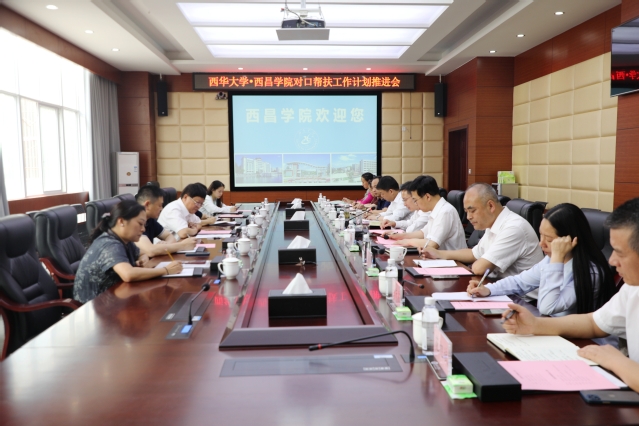 双方在西昌学院安宁校区知行楼一楼会议室召开了“西华大学·西昌学院对口帮扶工作计划推进会”。刘小兵一行与西昌学院校党委副书记、校长朱占元,党委常委、副院长胡金朝及学校相关部门负责人参加了会议。会议由胡金朝主持。