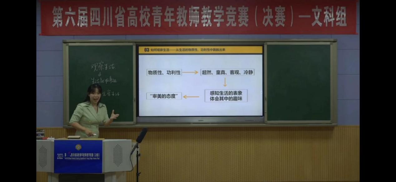 7月4日至6日,由四川省总工会、中共四川省委教育工作委员会、四川省教育厅主办的第六届四川省高校青年教师教学竞赛决赛在四川师范大学顺利举行。我校经济学院王蕊、文学与新闻传播学院段君奕荣获文科组三等奖,曾真获思想政治课专项组优秀奖,学校荣获优秀组织奖。