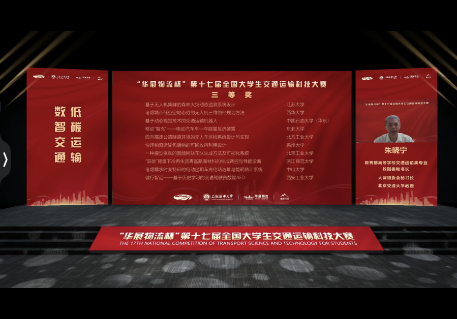 全国大学生交通科技大赛(NACTranS)是由教育部高等学校交通运输与工程学科教学指导委员会交通工程教学指导分委员会主办的交通科技创新竞赛,是一个以大学生为主体参与者的全国性、学术型的交通科技创新竞赛项目。本届大赛以“数智交通,低碳运输”为主题,围绕落实国家“双碳”的重要目标以及建设“交通强国”的战略需求,鼓励广大在校学生以创新思维从数字化、智能化角度解决我国交通运输领域的痛点问题。
