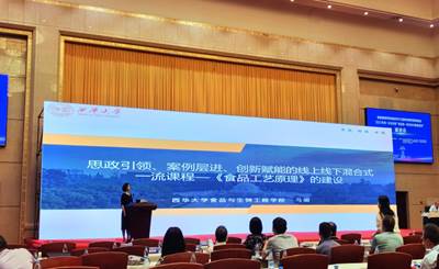 我校食品与生物工程学院院长唐洁教授、车振明教授、食品系主任马嫄和黄玉坤副教授参加了会议。车振明教授作为主持人主持了大会报告,国家级一流本科专业建设点负责人、四川省“课程思政”示范专业负责人、食品系主任马嫄以“思政引领、案例层进、创新赋能的线上线下混合式一流课程——《食品工艺原理》课程的建设”为主题作了大会报告,进行课程建设经验分享和教学模式、方法的辐射推广,得到了与会专家的高度赞赏。