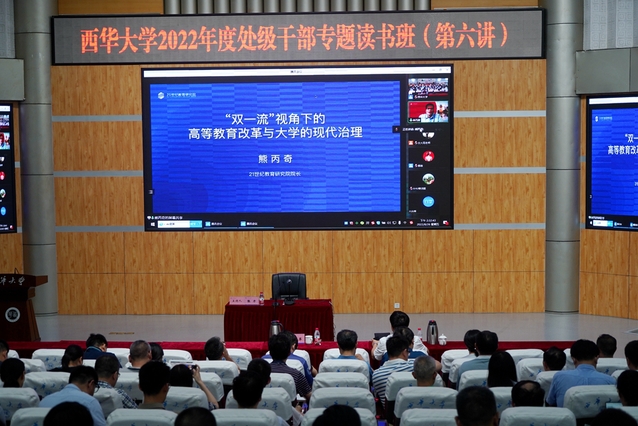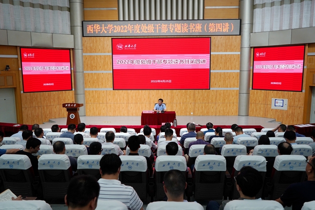 为培养造就忠诚干净担当的高素质专业化干部队伍,进一步提高处级干部政治素养、综合素质和履职能力,为推动学校第二次党代会精神和学校“十四五”规划落地落实提供坚实保障,学校举办了2022年度处级干部专题读书班。8月25日至26日,学校在四教报告厅连续举办了三场专题辅导报告。校领导、全体中层干部参加了学习活动。专题讲座由校党委副书记张力主持。