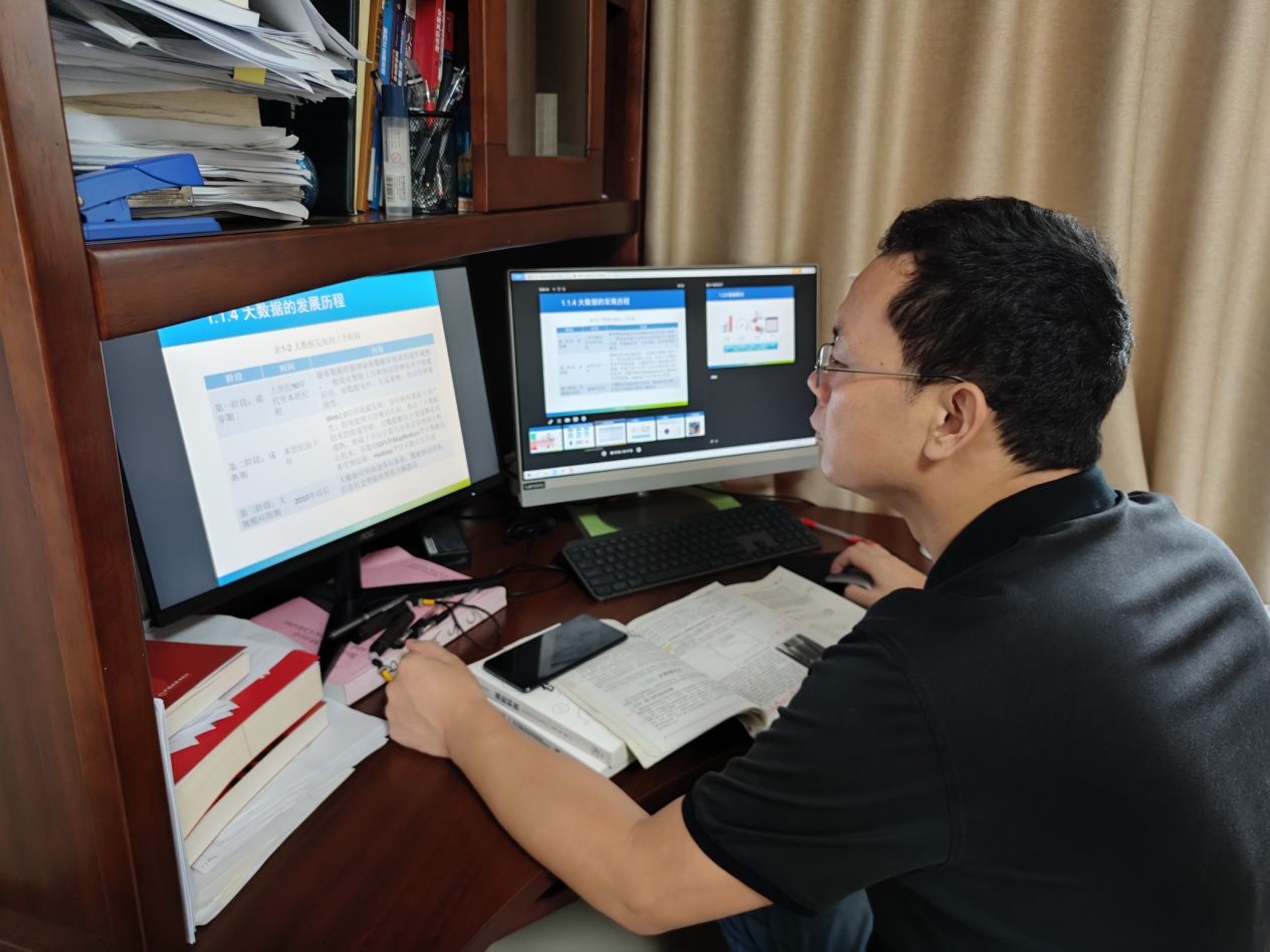 经济学院教师马江明为金融科技专业的92名学生线上讲授《大数据技术原理与应用》。从原计划的线下教学转变为线上教学后,他结合线上教学特点,对知识点讲解方式进行重新梳理,并针对性地设置互动环节,有效提高了课堂互动度和学生对新知识的掌握度。同时,为了避免平台出现卡顿问题影响课堂,马江明增加了钉钉上课的备选方案。他说:“线上教学需更加充满激情,用富有逻辑的讲解方式和有效的互动方法,让学生沉浸在课堂中,高效地吸收新知识。”