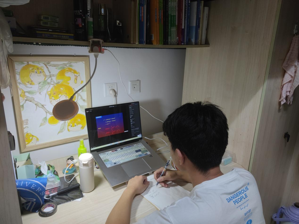 机械工程学院的王喻林同学说:“此刻,校园里应是书声琅琅;此刻,教室中该是笔声沙沙。疫情和高温,让这一切没有如期而至。虽是别样的网课课堂,但同样有收获。希望能快快回到校园,见到亲切的老师和同学,一起开启新学期。”
