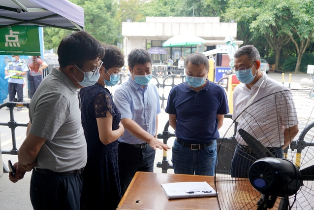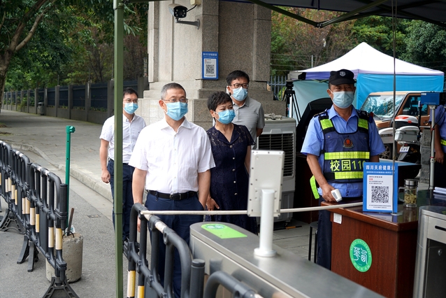 面对成都市疫情防控形势严峻复杂、学校实行居家办公和线上教学的情况,9月1日上午,校党委书记、疫情防控工作领导小组组长余孝其带队深入南大门、西大门、西侧门、西华苑北苑东门等值班值守岗、校园管控、一食堂核酸检测点等地,实地检查督导疫情防控措施落实情况和生活条件保障、情绪稳控等情况,慰问值守校园疫情防控工作一线的防疫工作人员,并就抓实抓细防控措施和关心关爱师生员工提出了工作要求。校党委副书记、校纪委书记朱燕萍,校党委副书记张力,副校长费凌、郑鈜,学校疫情防控工作领导小组办公室相关人员陪同检查。