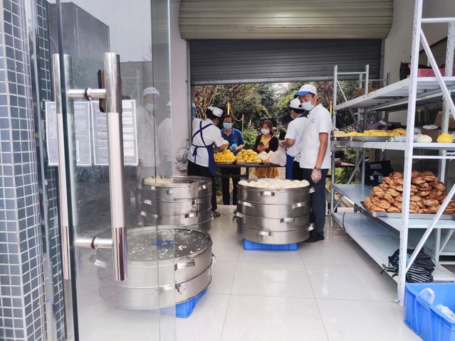 刘健带领员工在西华苑便民服务点提供包子、馒头等服务