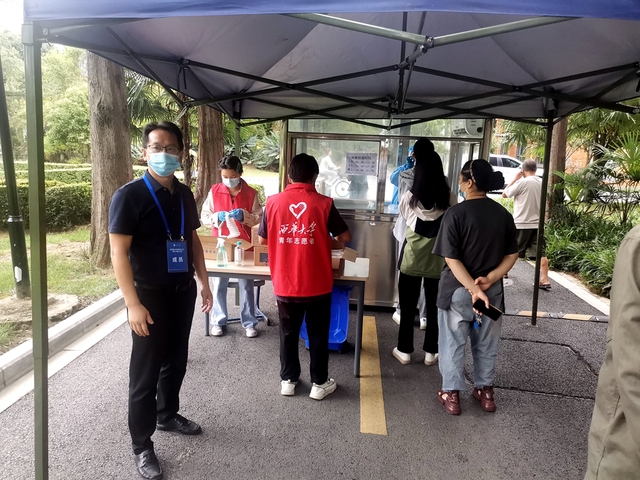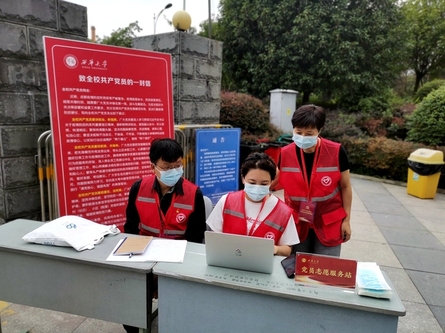 9月2日晚,《致全校共产党员的一封信》《关于组建西华大学疫情防控党员志愿服务队的通知》发出后,学校领导干部和党员志愿服务队纷纷下沉到南大门、西大门、西华苑北苑东门和各核酸检测点,亮明身份,服从安排,在疫情防控一线中当先锋、作表率,以实际行动诠释共产党员的责任与担当,充分发挥党员干部先锋模范作用,自觉将助力疫情防控作为践行“两个维护”的生动实践和检验“走在前、作表率”的实际行动。