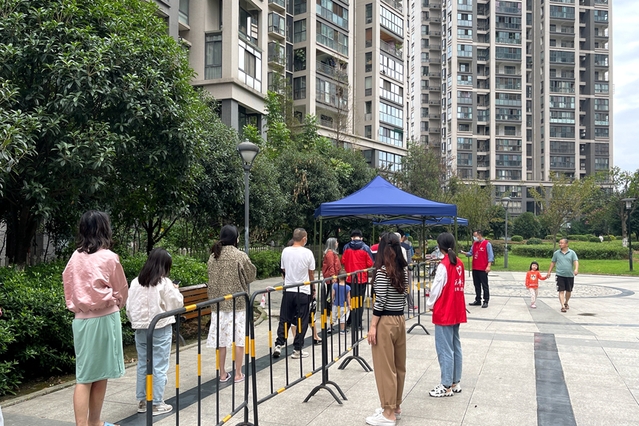 学术期刊部党员谭金蓉在彭州市致和街道连封社区,协助参与核酸检测现场服务工作。四川西华司法鉴定中心支部党员刘强,在高新区西园街道万景峰参加一线抗疫和志愿服务活动,参与核酸检测人员组织、秩序维护工作。