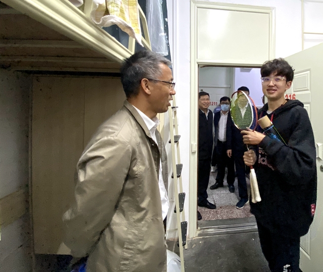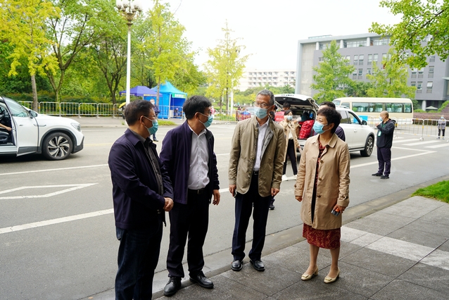 10月5日,副校长费凌赴宜宾校区检查指导迎新各项准备工作和现场指导迎新工作,与宜宾校区管委会、相关学院负责人交流了解情况,实地查看教室、图书馆、运动场、食堂等准备及运行情况,深入迎新现场、学生寝室与2022级新同学和迎新工作人员和志愿者代表进行亲切交谈,详细了解新生报到和住宿情况,嘱托迎新工作人员和志愿者要做好服务工作。