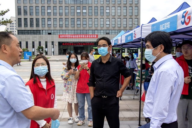 副校长费凌在宜宾校区现场指导迎新工作并与新生交流