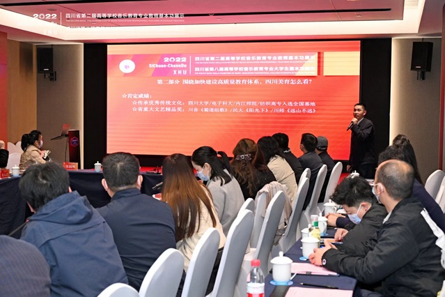 据悉,基本功展示活动期间,主办方还举行了学习交流活动。10月27日晚,与会领导、评委专家和参展学校代表专题学习了党的二十大精神。学习交流会上,省教育厅体卫艺处处长唐克红作了领学,分享了学习感悟,并结合四川高校美育工作现状,提出要通过补项、扩量、提质、增优等措施,为建设高质量教育体系、推进高质量内涵式发展做出新的贡献。四川师范大学、西华大学、四川音乐学院等与会代表分别就深刻领会二十大精神、以美育人、推动美育高质量发展等作了交流发言,积极探索未来高校音乐教育专业的改革方向与创新举措。
