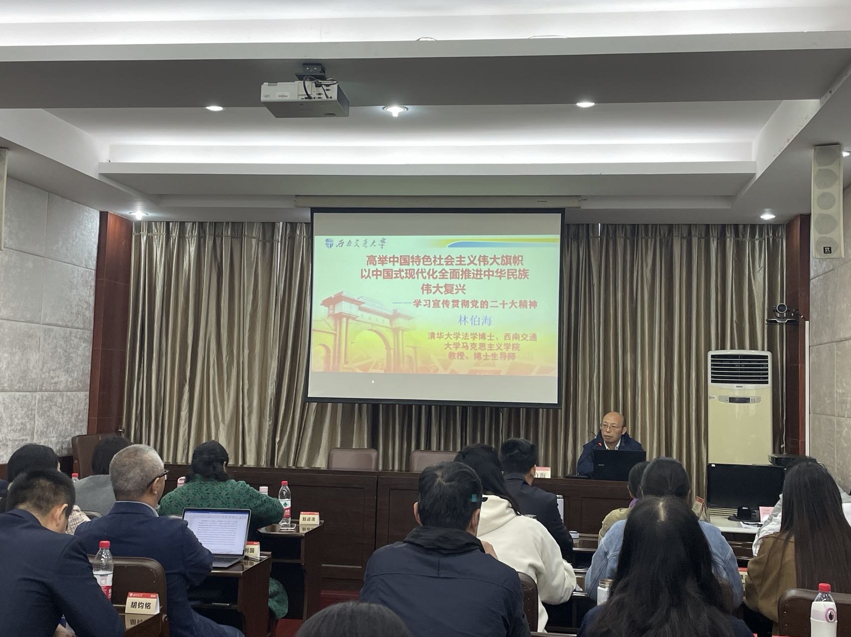 10月27日至30日,为深入学习党的二十大精神,有效推动民主党派人士、党外代表人士和无党派人士在思想上、行动上与党的二十大精神保持高度一致,进一步提升学校党外人士的政治觉悟与能力素质,学校组织党外人士近30人,由学校党委常委、党委统战部部长黄进带队赴西南交通大学社会主义学院开展专题培训。