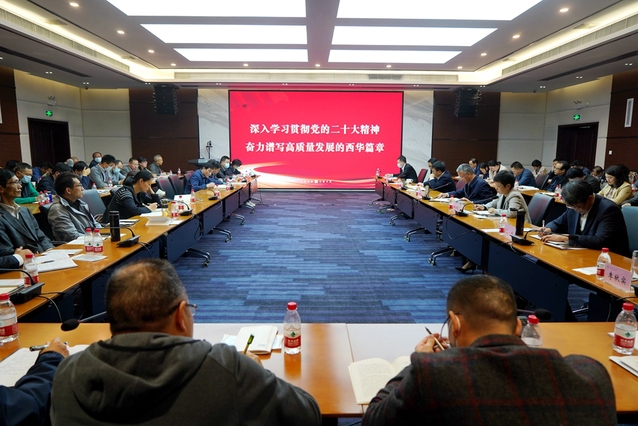 刘树根指出,学习宣传贯彻党的二十大精神是当前和今后一个时期的首要政治任务。要以“小学生”的态度,全面系统地学原文、读原著、悟原理,在学习内容上掌握好“广度”,在思考领会要有“深度”,在贯彻落实要有“效度”。他强调,要原原本本学习党的二十大重要文稿材料,拓展延伸学习党的最新理论文献,牢牢把握 “过去5年工作和新时代10年伟大变革的重大意义、新时代中国特色社会主义思想的世界观和方法论、以中国式现代化推进中华民族伟大复兴的使命任务、以伟大自我革命引领伟大社会革命的重要要求、团结奋斗的时代要求”等内容。他要求,学习贯彻党的二十大精神要落脚到指导实践、推动工作上,认真做好党的二十大精神的学习宣传,推动学校各项工作任务落实见效。全体干部师生要聚焦学校“十四五”规划的目标任务,一步一个脚印,稳扎稳打,全力推进学校高质量内涵式发展,为全面建设社会主义现代化国家、全面推进中华民族伟大复兴贡献力量。