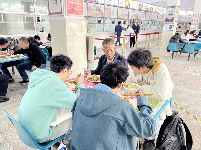 刘树根校长在食堂与用餐学生亲切交流