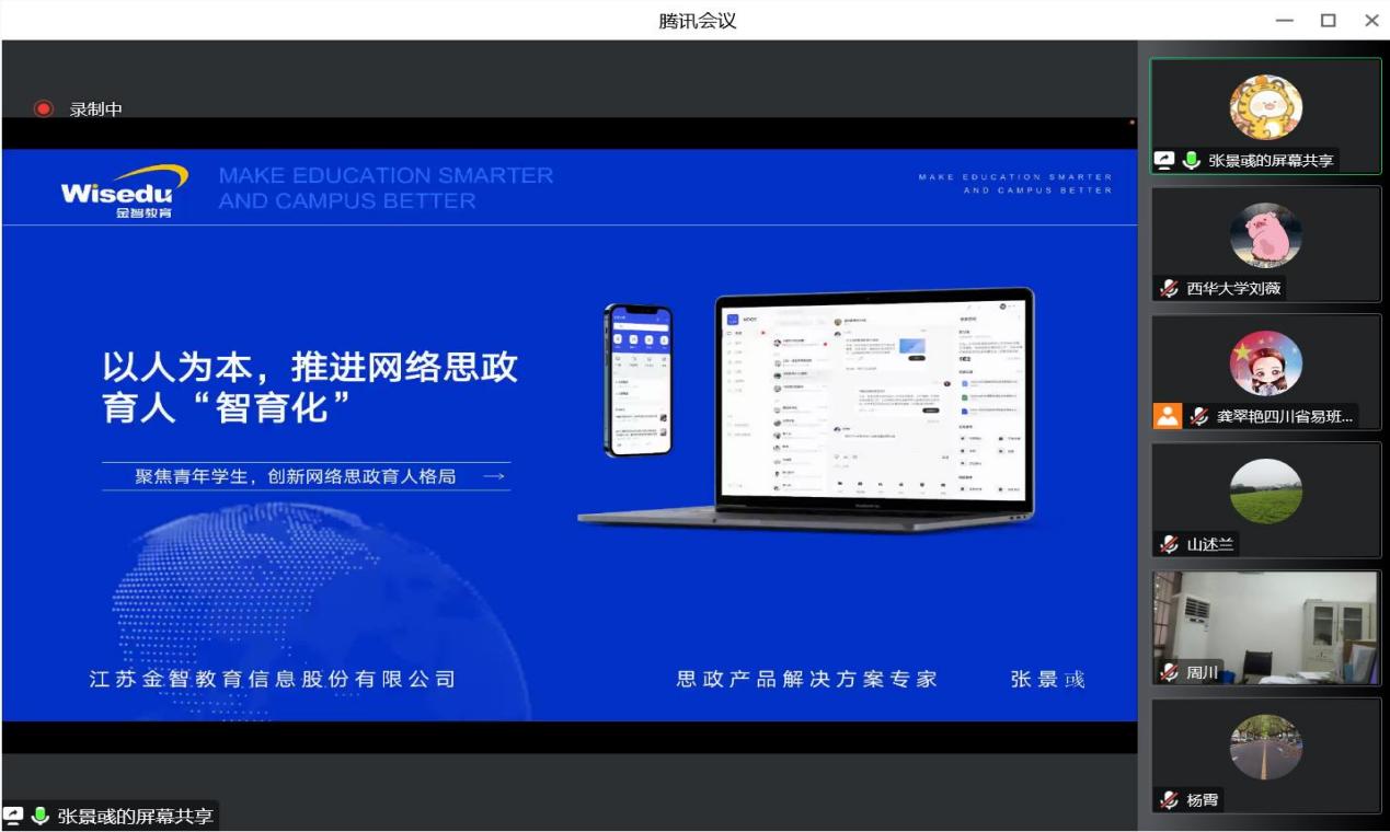 随后,金智教育思政产品解决方案专家张景彧以“以人为本,推进网络思政育人‘智育化’”为题分析了高校思政教育的现状、存在的三大困境分析与应对措施。在讲述如何应对时,张景彧重点介绍了一个应对工具——辅导猫,他从不同角色的视角、疫情防控、请销假和学生情况向辅导员们讲解了辅导猫的多重功能。他表示要解决学生刚性需求;打造精神家园满足精神需求;搭建互动参与平台渠道。