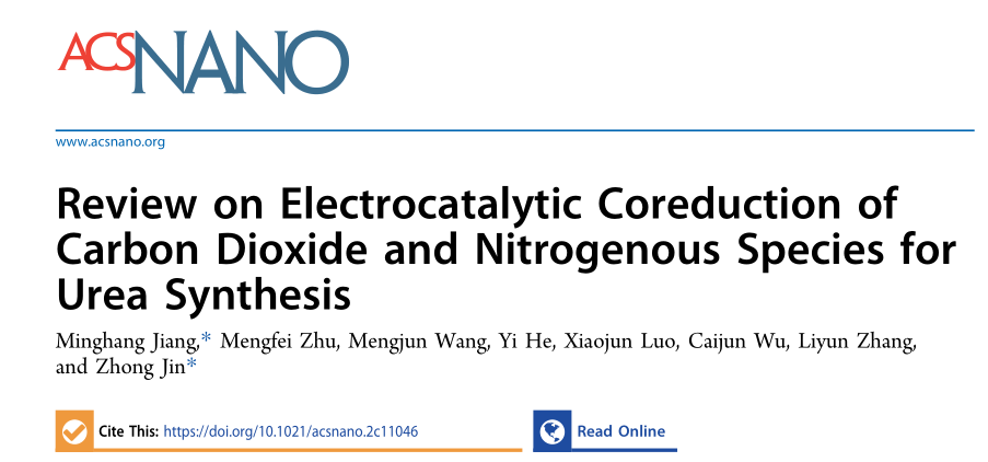 近日,理学院江明航博士在ACS Nano期刊(材料科学领域TOP期刊,中科院一区,IF=18.027)发表题为“Review on Electrocatalytic Coreduction of Carbon Dioxide and Nitrogenous Species for Urea Synthesis”的综述论文。江明航博士为该论文的第一作者和通讯作者,南京大学金钟教授为该论文的共同通讯作者。