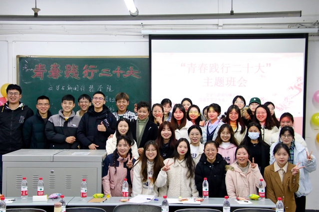 如果偶然经过6C-208教室,或许会以为教室内正在讲授计算机学科的专业课。但如果驻足停留片刻,就会看到黑板上端正写着“青春践行二十大”的粉笔字,看到同学们充满期待的眼神和会心的微笑,听见不时传出的热烈掌声。