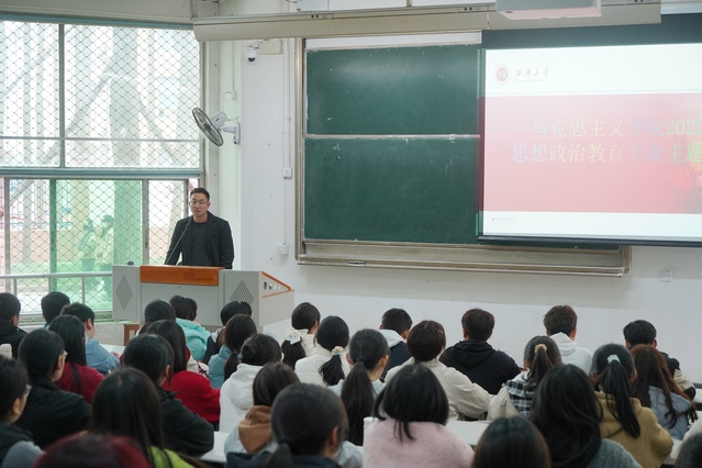 针对同学们迷茫专业发展前景时,张力教授给出了他的第三个锦囊——建立专业自信、学好专业知识。他指出,思想政治教育专业从来没有像现在这样受重视,目前我们已经实现了第一个百年奋斗目标,正在向实现第二个百年目标奋进。要实现中华民族伟大复兴的目标,更加需要思想教育专业人才,更需要把14亿人民的力量凝聚起来,以中国式现代化推进中华民族伟大复兴。“同学们,你们所在的学院是四川省重点马克思主义学院,拥有国家级一流专业,希望同学们增强专业自信,学好专业知识,提高专业能力,将自己所学应用于实践,为实现中华民族伟大复兴作出应有的贡献。”