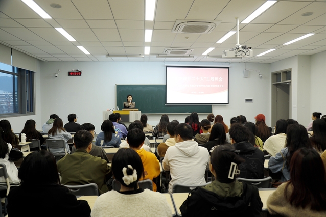 3月6日晚,宜宾校区2A-203教室灯火通明,一双双求知若渴的澄澈眼神,一张张聚精会神的青春脸庞,满怀期待参加新学期首场“青春践行二十大”主题班会。