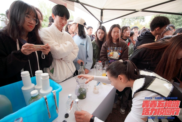 活动场地周围还设置VR设备调酒设备、趣味投篮、现场调酒、知识问答等系列活动,同学们乐在其中,并通过互动对中国白酒的酿造工艺及酒类风味化合物的研究产生了浓厚的兴趣。