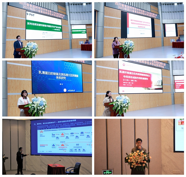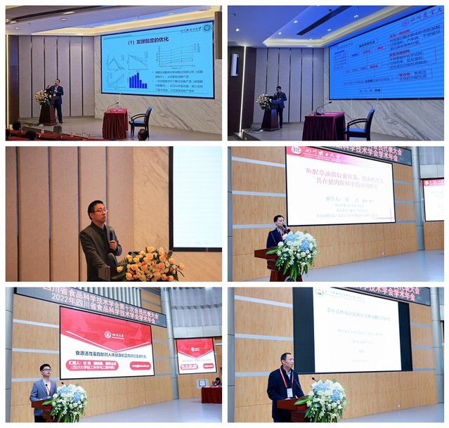 四川省食品发酵工业研究设计院有限公司教授级高级工程师陈功、江南大学教授陆震鸣、西华大学教授唐洁分别作了学术年会主题会报告。西南民族大学唐善虎教授、中科院成都生物所赵海研究员、四川旅游学院辛松林教授、四川轻化工大学黄治国教授、四川农业大学张清教授、西华大学关统伟教授(排名不分先后)等20余位省内外专家就“发酵与调味品”“酿酒工程”“果蔬贮藏与加工”“饮料食品”“粮油食品”“蛋白食品”“预制菜食品”和“畜禽肉制品”八个主题作了精彩专题报告。