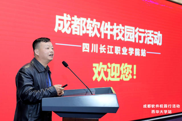 成都软件校园行的下一站活动将在四川长江职业技术学院举办。四川长江职业学院副校长易贤文上台发布“成都软件校园行·长江职院站”活动预告,“第二站活动将以‘数字驱动转型、软件赋能制造’为主题,期待与大家在龙泉相聚”。
