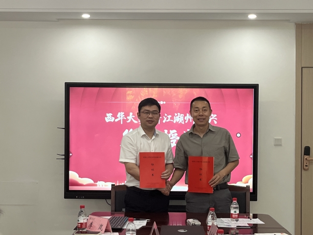 调研座谈会上,李绍军首先对吴兴区人社局一行来校调研交流、选录毕业生表示热烈欢迎,同时详细介绍我校毕业生就业情况。他表示,西华大学经过60余年的发展,已有众多毕业生奋斗在湖州的各个领域,希望双方在今后深化交流合作。唐晓华介绍了吴兴区的人文地理、产业经济、就业环境及未来发展前景,同时对当地人才引进政策做了详细介绍,并诚挚邀请毕业生来湖州就业创业。随后,双方举办校地人才智力项目战略合作签约授牌仪式,湖州市吴兴区人社局为我校授予“人才工作站”牌匾。