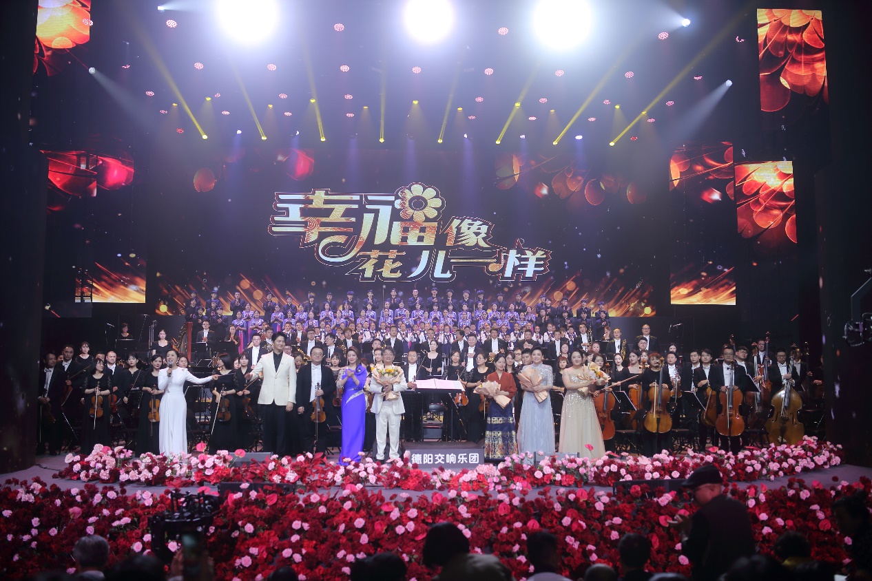 4月26日晚,“幸福像花儿一样”交响音乐会如期在德阳录制。音乐会由李海鹰先生执棒,青年女高音歌唱家、国家一级演员王莉,青年男高音歌唱家、国家大剧院驻院男高音王凯等著名歌唱家助演。竹笛演奏家唐俊乔,手风琴演奏家李楚然,中国戏曲学院民族乐团首席裴若雯等国家级演奏家共同演绎了《幸福像花儿一样》《过河》《走四方》《我的爱对你说》等14首作品。