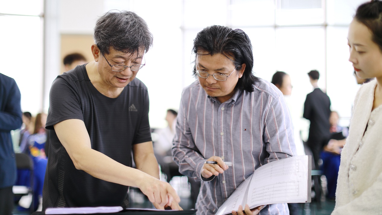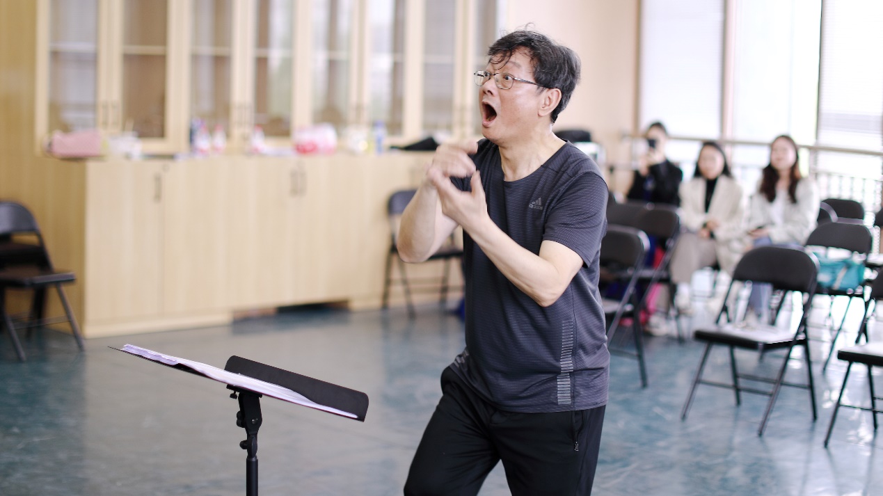 座谈交流会上,李海鹰就音乐作品的风格把握、艺术处理以及与交响乐团合作时演唱的注意事项等方面向合唱团指挥进行了深入、细致的讲解,并亲自对合唱团进行了现场指导。