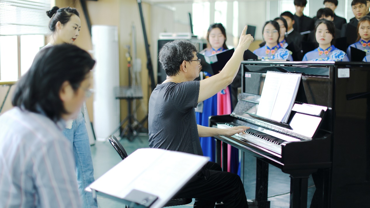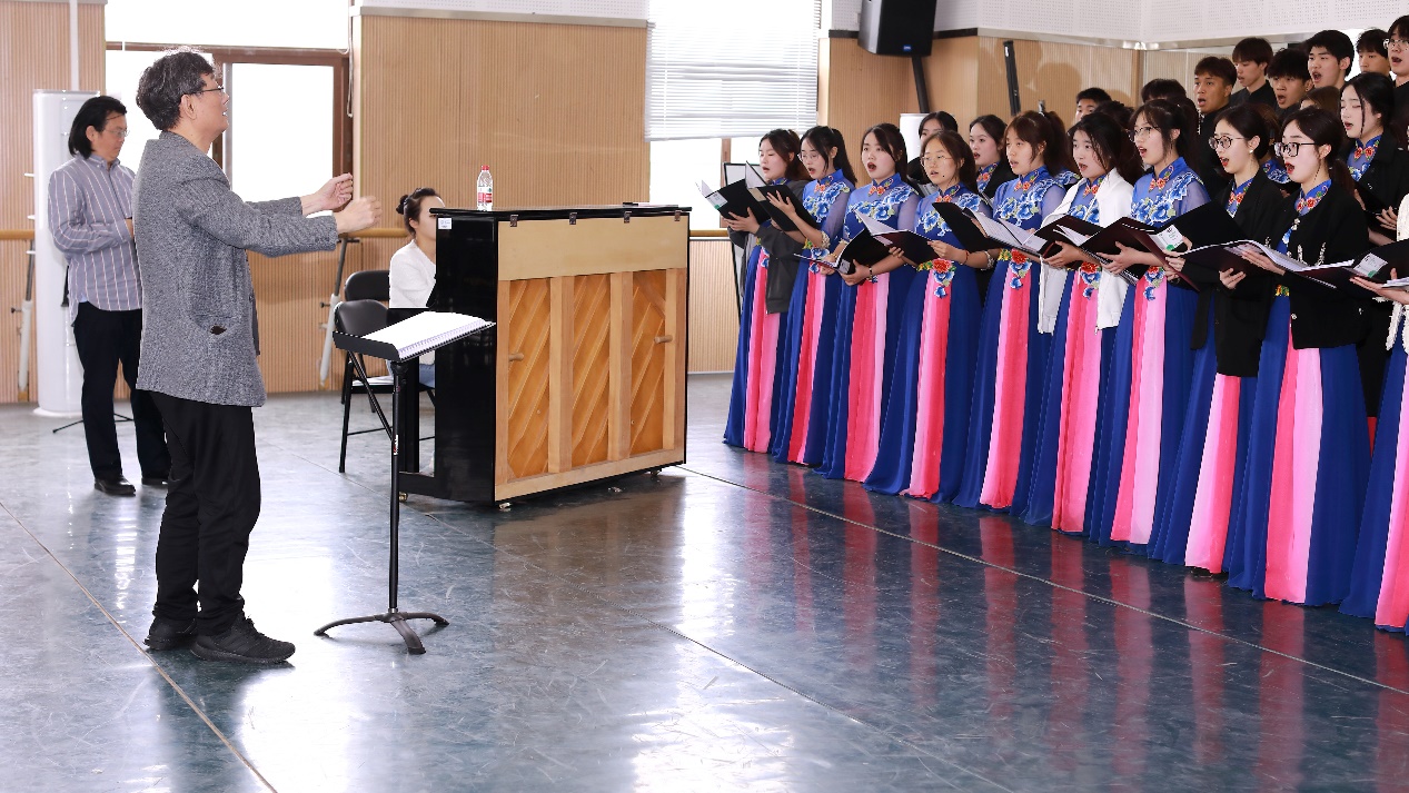 对 “飙之梦”合唱团进行现场指导