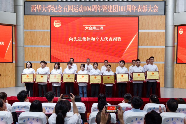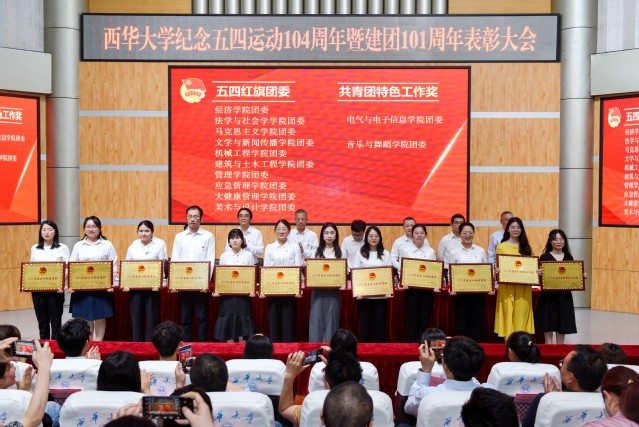 大会在慷慨激昂的国歌声中拉开帷幕。费凌宣读了《西华大学关于表彰2022-2023学年五四青年节先进集体和个人的决定》。学校授予法学与社会学学院法学专业2021级1班团支部等133个团支部“五四先进团支部”荣誉称号,授予经济学院经济学专业2020级3班团支部等10个团支部“五四红旗团支部”荣誉称号,授予电气与电子信息学院团委等2个单位“共青团特色工作奖”荣誉称号,授予经济学院团委等10个单位“五四红旗团委”荣誉称号,授予沈嘉鑫等1635名同学“优秀共青团员”荣誉称号,授予李欣等891名同学“优秀共青团干部”荣誉称号。参会领导向获得表彰的先进集体和个人代表颁奖。