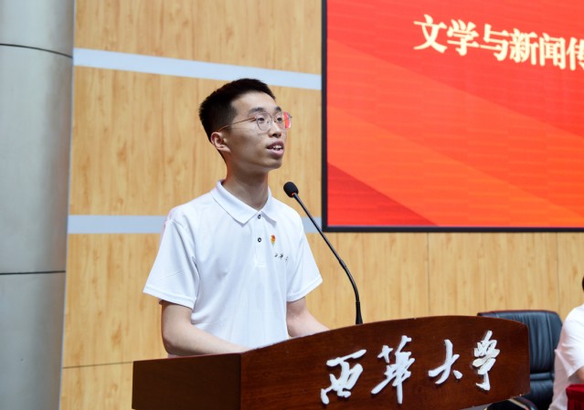 会上,受到表彰的先进集体代表、机械工程学院团委书记陈莉萍和先进个人代表、文学与新闻传播学院学生武晓龙分别作交流发言。