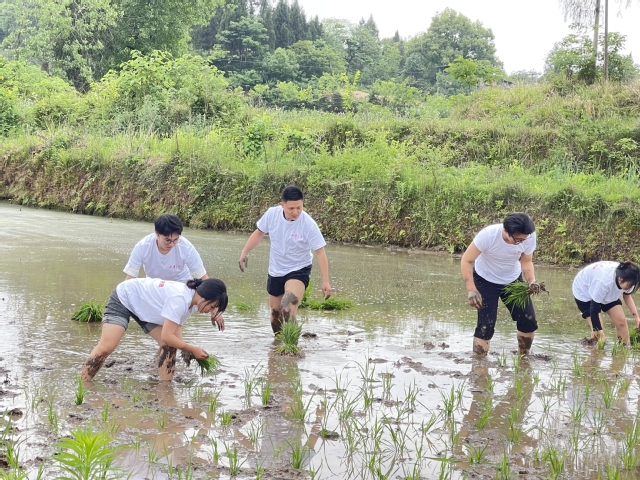 为深入学习贯彻党的二十大、中央农村工作会议精神,贯彻省委十二届二次全会关于乡村振兴的决策部署,涵养学院师生党员“知农事、解民忧”情怀,以实际行动践行党的初心使命,助力乡村振兴。5月8日,美术与设计学院在学院党委书记屈立丰的带领下,来到西华大学定点帮扶点南充市嘉陵区开展“田间插秧践初心 忆苦思甜促振兴”主题党日活动。学校派驻帮扶干部雷云中,学院两委委员、班子成员、支部书记及学生党员代表一行48人参加了本次活动。