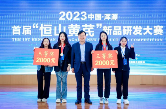 当日上午,首届“恒山黄芪”新品研发大赛隆重举行,食品与生物工程学院邢亚阁教授担任本次大赛评委之一。大赛上,黄芪酵素、黄芪茶、黄芪啤酒、黄芪洗护套装、黄芪口服液、黄芪荞麦乳茶、黄芪祛垢牙粉…近20款黄芪创新产品亮相大赛。经过现场展示、参赛团队介绍,专家提问打分,最终评选出各获奖项目。食品与生物工程学院两支参赛队伍“芪荞乳茶”与“黄芪口服液”认真备赛,均荣获大赛三等奖,展现了西华学子团结勤奋、严谨求是的风采。