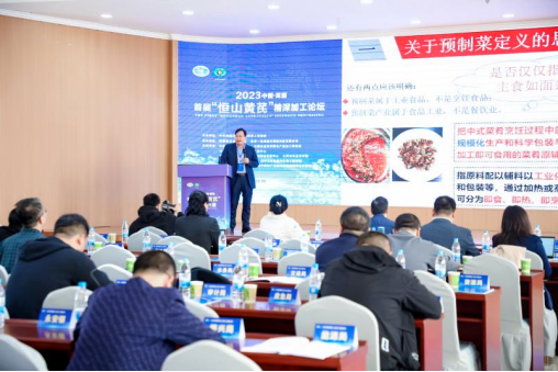 邢亚阁教授在论坛上作了“科学有序推动预制菜产业高质量全链协同发展”的报告。邢亚阁教授表示,“预制菜作为产业融合发展的新模式、新业态,是农民增收致富的新渠道,对促进创业就业、消费升级和乡村产业振兴具有重要意义。”在报告尾声,邢教授针对当前预制菜产业旺盛的需求形势,对黄芪入菜的可行性提出思考并作出可行性分析。
