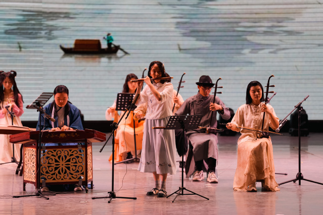 在第三篇章“奋斗青春”中,西华大学管弦乐团表演的《Merry Christmas Mr. Lawrence》,旋律轻柔、婉转忧伤,音符间跳动着唯美与浪漫;木芽声剧社的配音节目《盛世荣耀》气势恢宏、激情高昂,用声音展现锦绣江山美如画;UKU吉他社带来摇滚乐曲用富有韵律的节奏、灵活热情的表演,抒发着青春的激情与澎湃;西华大学礼仪队表演的《新面孔》,以时装秀的形式展现青春的活力与自信。