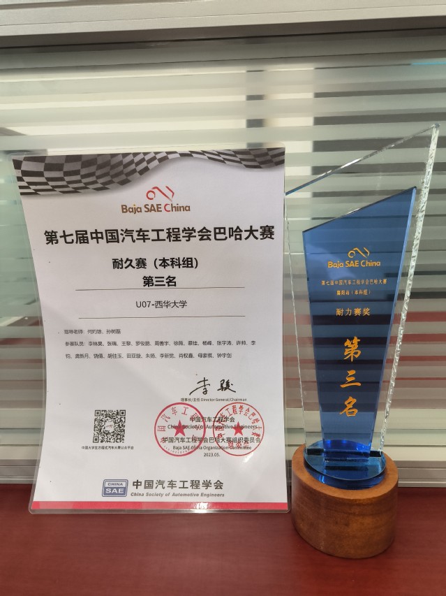 5月24日-28日,第七届中国大学生方程式系列赛事巴哈大赛(襄阳站)在襄阳举行。来自国内56支车队的近1200名大学生,在各项紧张的赛事中顽强拼搏,角逐年度总冠军。西华大学巴哈车队在比赛中脱颖而出,获得操控赛第一名,耐久赛第三名,单圈计时赛第三名,年度总亚军,总成绩一等奖。